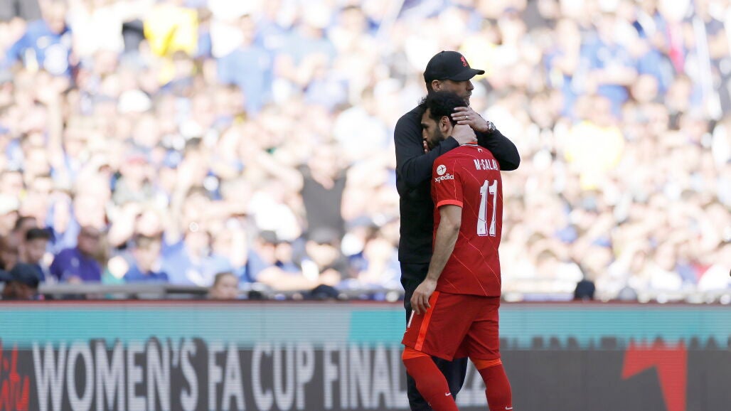 El delantero egipcio se ha marchado con aparentes síntomas de dolor en el minuto 33 de la final de la FA Cup entre Liverpool y Chelsea. Faltan 14 días para la final de Champions League.