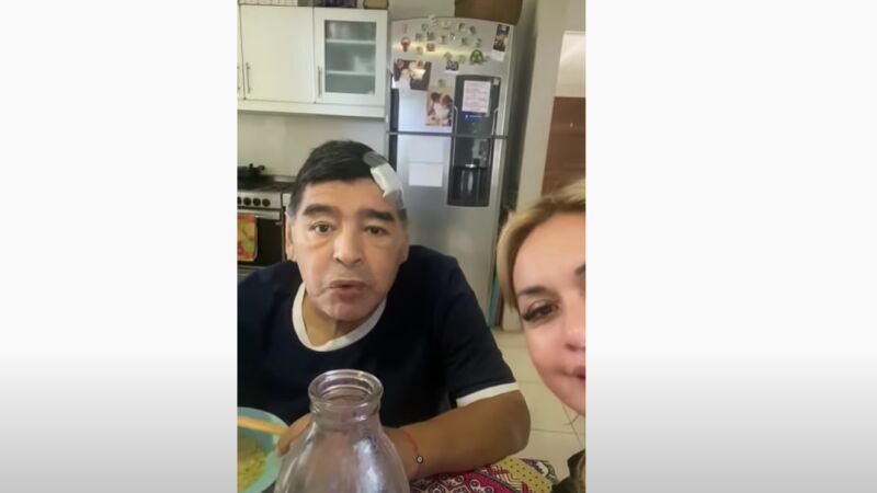En el citado vídeo aparece el astro argentino pocos días antes de morir. Se le puede ver comiendo junto a a su ex Verónica Ojeda y enviando un mensaje a Leopoldo Luque, explicándole cómo se encuentra tras tras la operación del hematoma subdural.