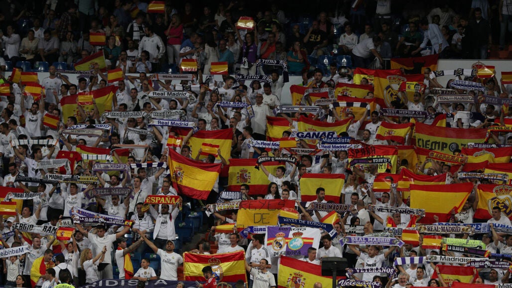 El Santiago Bernabéu respondió en el mismo día que Cataluña celebraba su referéndum ilegal con la exhibición de banderas españolas en la grada y los cánticos de "que viva España" que popularizó el cantante Manolo Escobar.