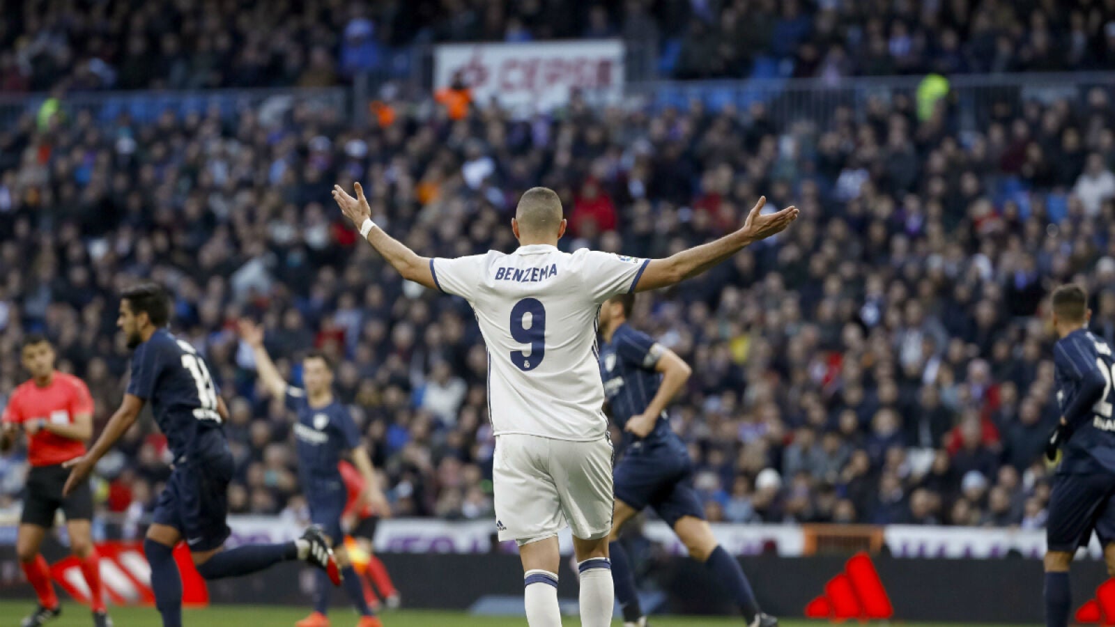 Benzema, que volvía a ocupar la posición de delantero centro tras no ser titular en el encuentro de ida de los cuartos de final de la Copa del Rey ante el Celta de Vigo, no tuvo su mejor tarde y dispuso de varias ocasiones sin el premio del gol.