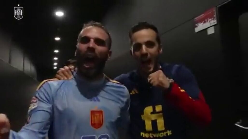 Así fue la fiesta de España en el vestuario de Braga tras ganar a Portugal 0-1 en Braga y meterse en la Final Four de la Liga de Naciones.