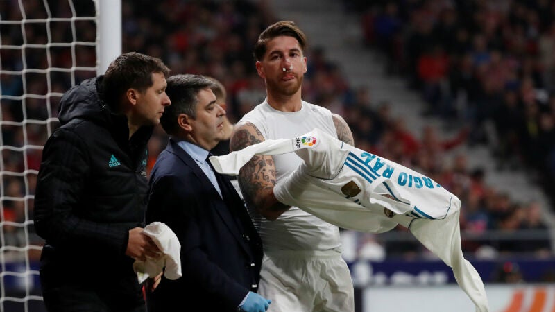 Sergio Ramos, capitán del Real Madrid, se sometió a unas pruebas médicas en la mañana del domingo, tras caer lesionado por una patada en el rostro en el derbi madrileño ante el Atlético de Madrid, que confirmaron que sufre "una fractura del hueso propio de la nariz".