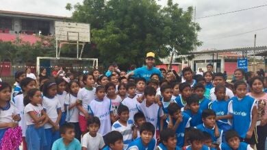 Sergio Ramos visita a los niños de Perú damnificados por las recientes inundaciones
