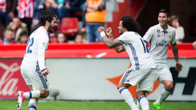 ElReal Madridvolvió a ganar un partido en el último minuto. Esta vez fueIsco, autor de un doblete y un auténtico golazo, el que rescató la victoria para los de Zidane con un ajustado lanzamiento en el minuto 90. Tuvo que remontar dos veces el líder en El Molinón ante un Sporting que se adelantó con goles de Cop y Vesga.