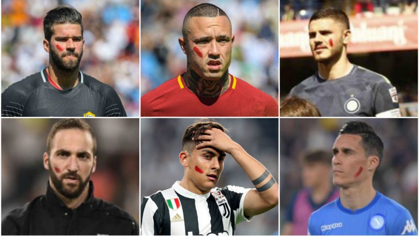 La cuenta oficial de Twitter de la Serie A quiso mostrar el bonito gesto que este fin de semana se ha llevado a cabo en Italia a través de varios tuits con las fotos de los jugadores con una marca roja en sus caras.