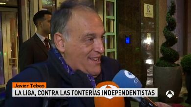 El presidente de la Liga, Javier Tebas, volvió a cargar contra el independentismo el día que el denominado Comité de Defensa de la República, que se ha apropiado del escudo del Barcelona, haya hecho un llamamiento para este sábado en el Camp Nou para pedir la libertad de los presos políticos y contra la represión.