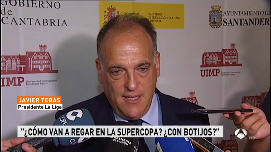 Javier Tebas fue preguntado por la ausencia de luz y agua en el estadio de Tánger. El presidente de LaLiga se mostró irónico y aseguró que espera que se pueda subsanar a tiempo para que el partido se dispute en la fecha prevista.