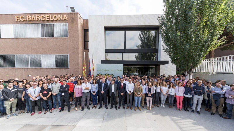 El Barcelona ha compartido una fotografía en la que se puede ver a los trabajadores del club fuera de las oficinas realizando un parón para "condenar el uso de la violencia" durante el referéndum del 1-O.