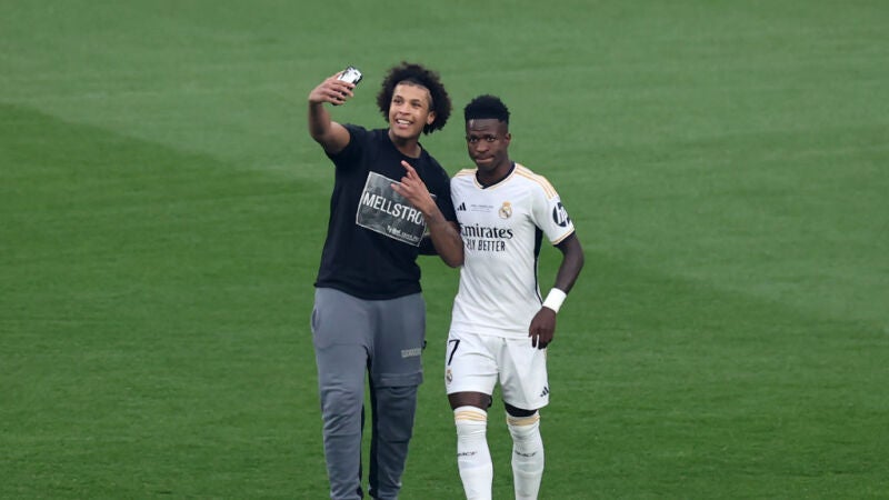 Tres espontáneos interrumpieron el inicio de la final en Wembley entre Borussia Dortmund y Real Madrid. Uno de ellos se sacó una foto con Vinícius.