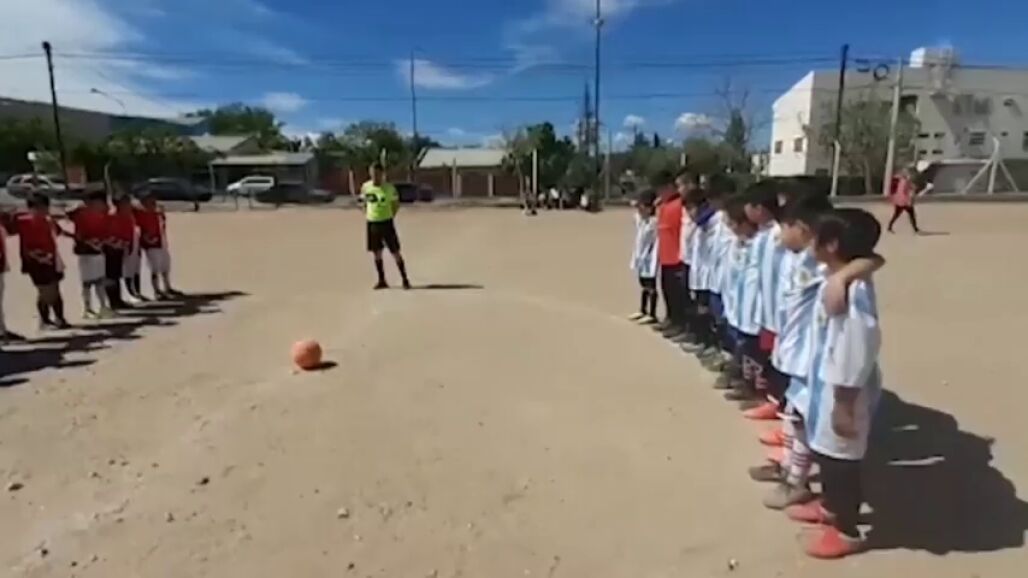 Momentos de gran tensión durante un partido de fútbol de infantiles en la ciudad de Neuquén, Argentina. Los jugadores de ambos equipos se disponían a guardar un minuto de silencio antes de comenzar el encuentro cuando sucedieron los hechos.