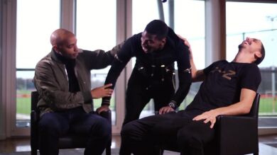El delantero sueco invitó a su compañero de equipo a sentarse junto a él y Henry, pero lo hizo de una forma muy peculiar. "Si quieres sentarte entre dos grandes jugadores ven. Siéntate en el suelo", le indicó Ibrahimovic a Pogba mientras Henry no podía contener la risa.