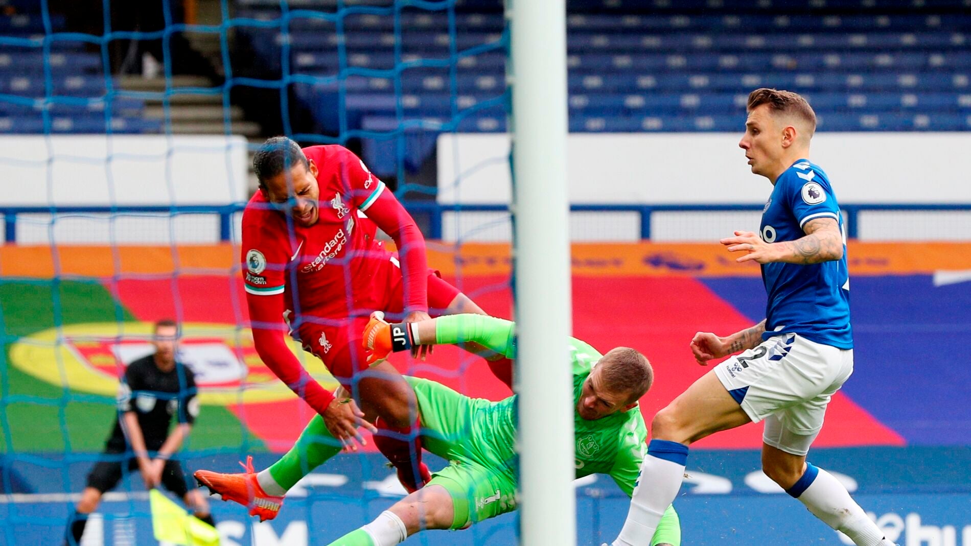 Van Dijk disputaba el derbi ante el Everton (que terminó con empate a tres) cuando sufrió la dura entrada del guardameta rival. Jurgen Klopp tuvo que retirar de inmediato al central red, que se dolí en el césped del Goodison Park.