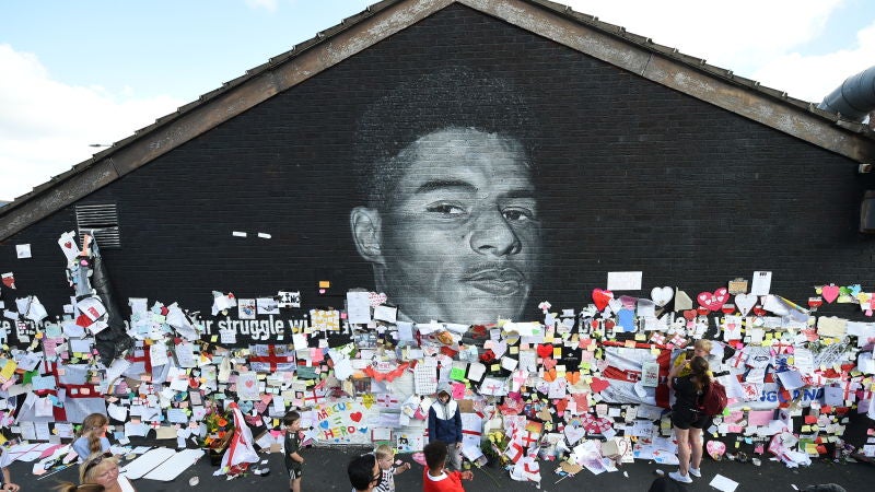 Tras recibir insultos racistas por parte de algunos aficionados ingleses, Marcus Rashford ha visto como la sociedad inglesa se ha volcado en su apoyo. Un mural con su cara en Withington, la localidad natal del jugador del Manchester United, se ha convertido en un símbolo en la lucha contra el racismo.