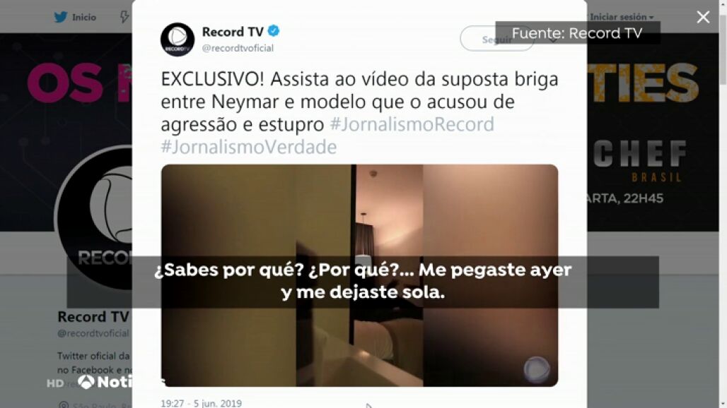El vídeo filtrado del encuentro entre Neymar y la modelo Najila Trindade en un hotel de París por parte del canal de televisión 'Record TV' ha sacado a la luz la conversación que ambos mantuvieron sobre la cama del hotel y que acabó con la modelo tratando de golpear al futbolista.