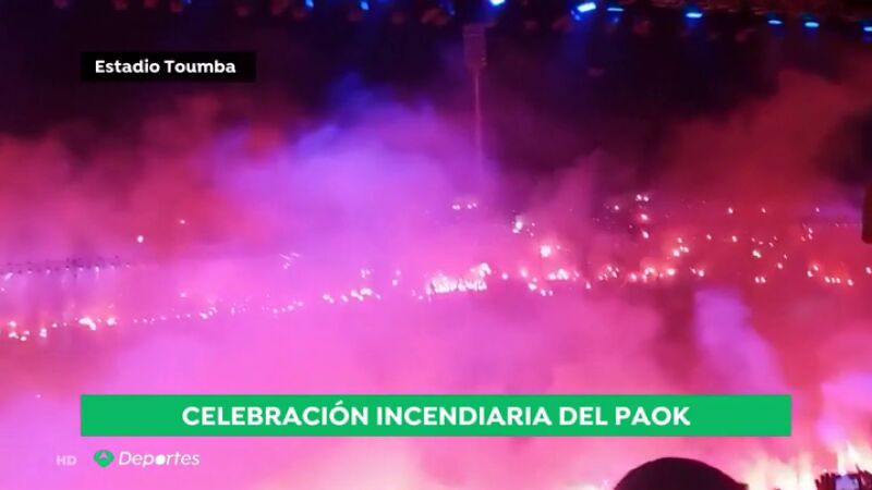 El estadio del PAOK celebró por todo lo alto la consecución del título de Liga. Una celebración que se les fue de las manos por la cantidad de bengalas que se encendieron en las gradas del estadio.