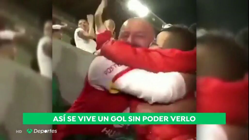 Emotiva imagen la que protagonizan un señor y un niño del equipo colombiano del Independiente de Santa Fe. El chaval, que no puede ver, sintió un gol de su equipo como sí pudiera hacerlo. Todo gracias a la narración del hombre.