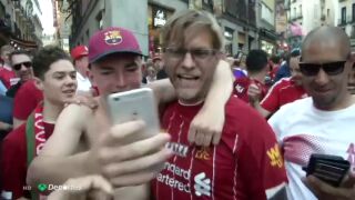 El centro de Madrid vivió la revolución Klopp... o eso creían quienes estaban allí. Un doble de inmenso parecido a Jurgen, entrenador del Liverpool, se paseó ataviado con la camiseta 'red' por la capital.