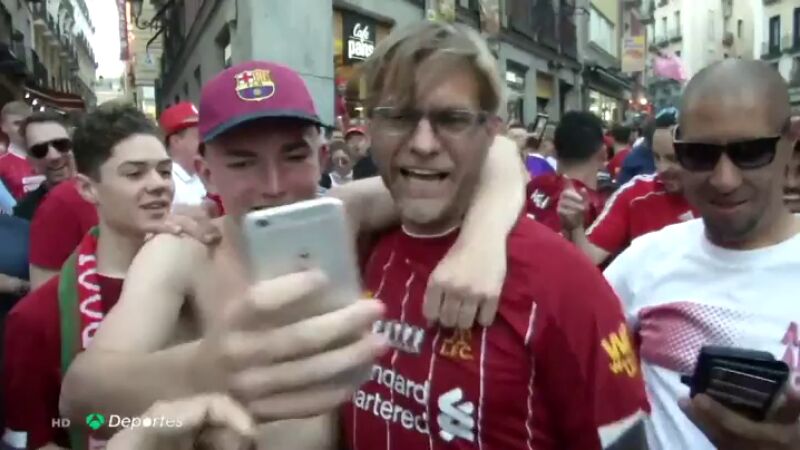 'Jurgen Klopp' estuvo en el centro de Madrid a escasas horas de la final. Bueno, en sí no. Un hombre de asombroso parecido con el técnico alemán revolucionó la zona céntrica de la capital de España, mientras el auténtico Jurgen dirigía un entrenamiento.