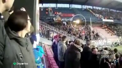El Sparta de Praga-Viktoria Plzen tuvo un momento muy tenso en las gradas. Una mujer tuvo que ser evacuada tras recibir el impacto de una bengala lanzada por parte de uno de los ultras del Plzen.