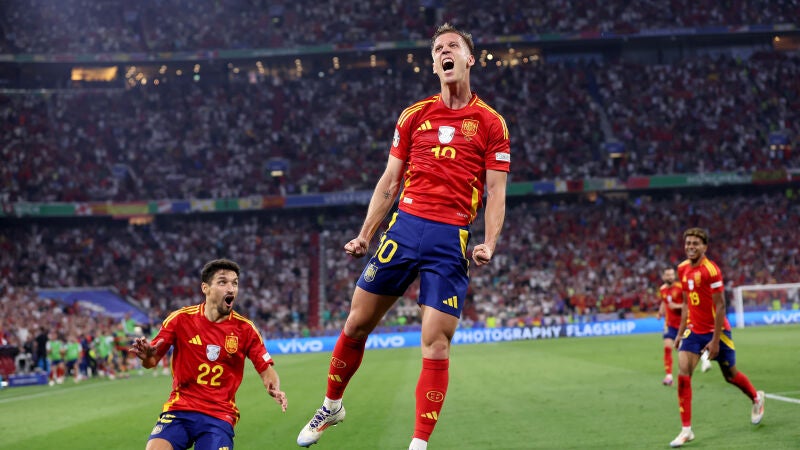 Los de Luis de la Fuente ya habían conseguido algo complicado, igualar la semifinal en algo más de 10 minutos. Pero todavía quedaba lo mejor, la puntilla llegó en el minuto 25 de las botas del mejor jugador del torneo hasta el momento: Dani Olmo. El atacante del Leipzig hizo travesuras en el área y tras un maravilloso control y una finta disparó a puerta con la suerte de que golpeó en Koundé y se metió en la portería francesa. España remontaba en solo cuatro minutos y conseguía de esta manera anotarle dos goles al muro de Deschamps, que en 240 segundos había encajado ya el doble de tantos que en los 480 minutos previos (1).