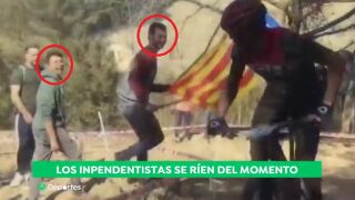 Las risas del grupo de independentistas tras tirar al ciclista Carlos Coloma: "Una 'gracia' que pudo acabar en susto"