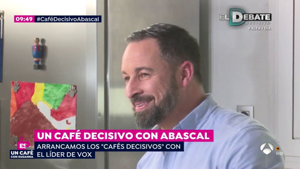 El candidato de Vox, Santiago Abascal, se ha tomado un café con Susanna Griso donde ha hablado sobre el uso de las armas o el derecho a la vida, entre otros temas.