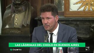 Simeone ha sido distinguido como personalidad destacada del deporte por parte de Buenos Aires. Le acompañaba su mujer en un acto en el que la emoción pudo con el entrenador del Atlético de Madrid.