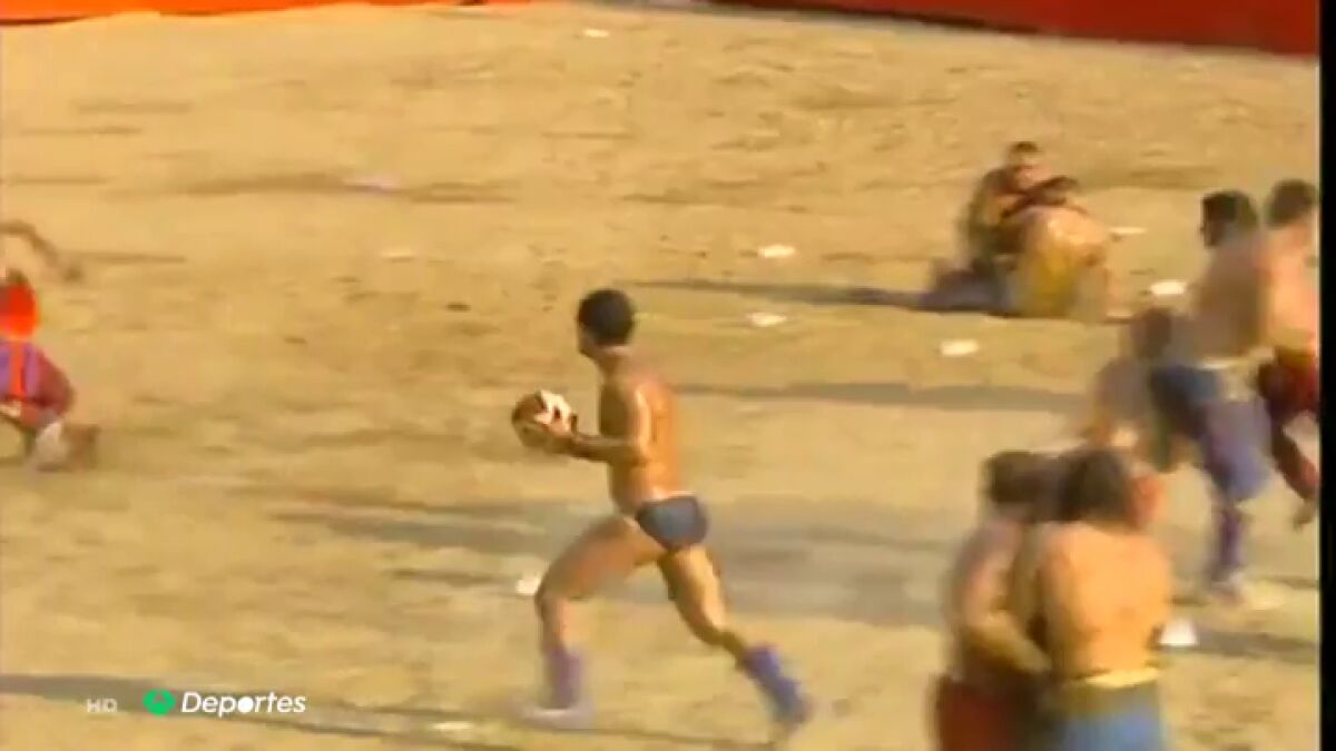 En este violento fútbol del Renacimiento vale casi todo: puñetazos, codazos... Y también coger el balón con la mano. Lo inventaron así los romanos para mantener en forma a sus legiones.
