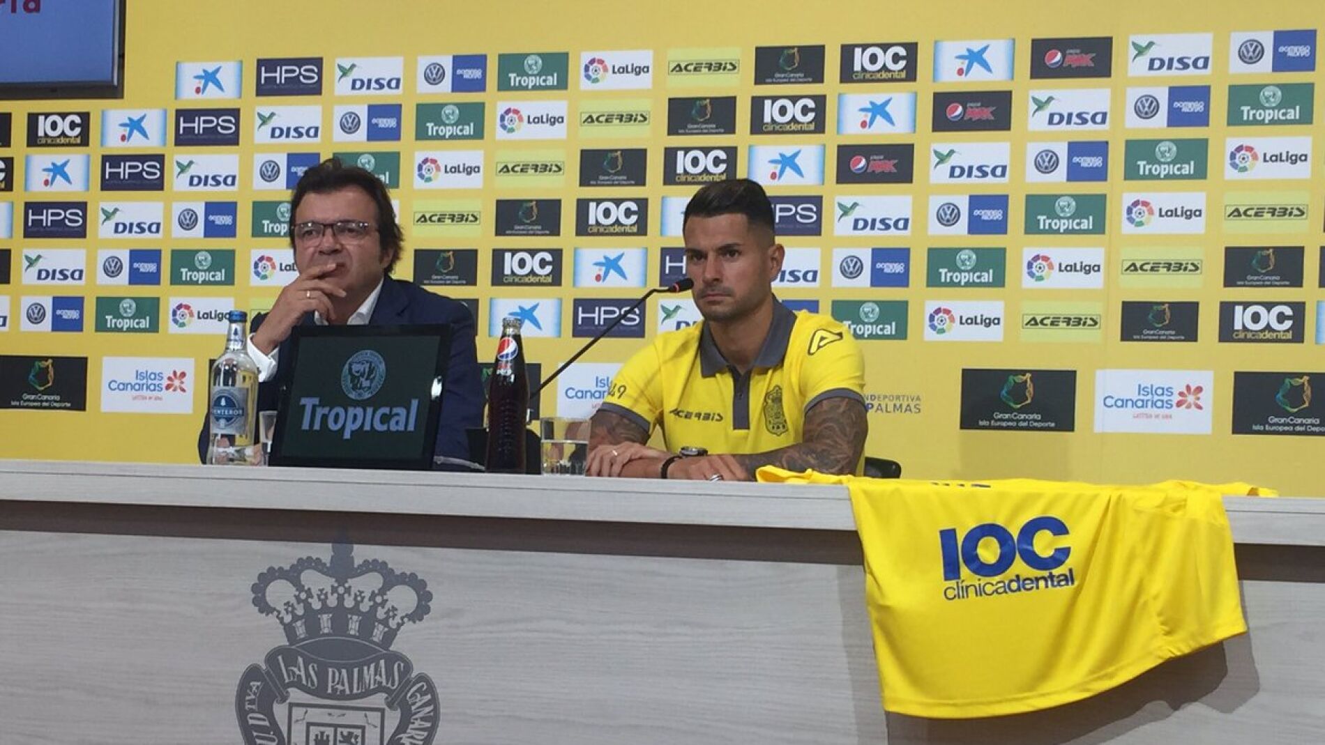 Preguntado por cómo afronta un futbolista estar en dos equipos en una misma temporada, el internacional con España añadió que llega a Las Palmas a ganarse el puesto, "sin reservar nada" mientras esté en la isla. Por su parte, destacó la influencia del presidente de Las Palmas, Miguel Angel Ramírez, agradeciéndole "poder estar" en el conjunto amarillo.