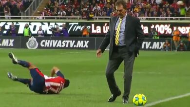 La Volpe, técnico del América, irrumpe en el terreno de juego...¡y le roba el balón a un rival!