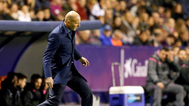 Zinedine Zidane, entrenador del Real Madrid, mostró su preocupación tras el empate a dos ante el Levanteque les aleja aún más de la Liga. Además, justificó el cambio de Cristiano: "Quería meter a un jugador en mediocampo y tener más fuerza".