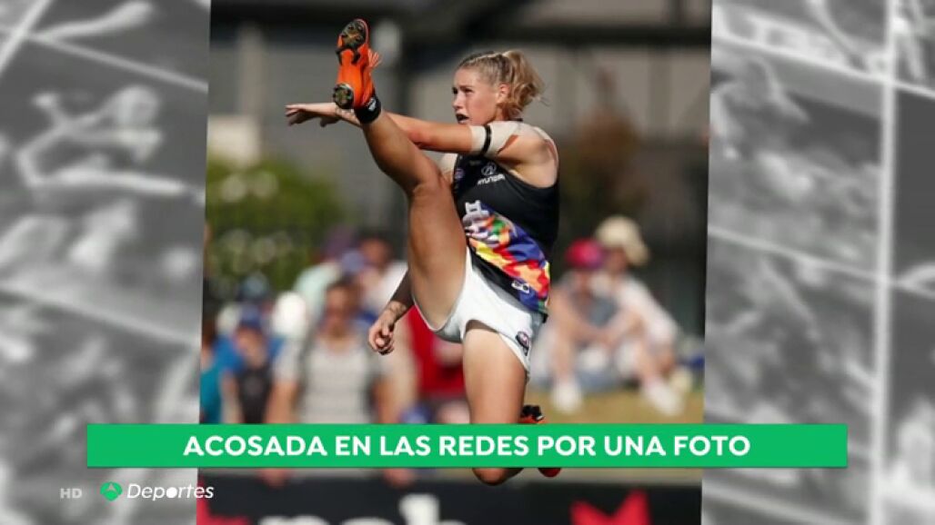 La delantera estrella del Carlton, equipo femenino de la Liga de Fútbol Australiana, sufrió decenas de comentarios machistas tras una fotografía en la que aparecía golepando un balón en un partido. "Hablaban de mi cuerpo, no de lo que hacía con mi cuerpo", denunció Tayla Harris.