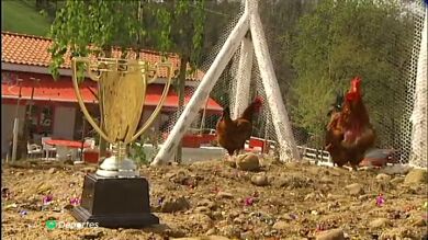 Estas gallinas de la granja Cabañuca predicen el resultado de la final de Copa del Rey entre la Real Sociedad y el Athletic Club de Bilbao. Antena 3 Deportes habla con Pedro Fernández, dueño de la granja: "Vienen rodadas, pero ha habido piques", bromea. "Lo veo igualado porque son gallinas de la misma raza. Los huevos son de gran sabor y suelen ser más grandes", dice Pedro.