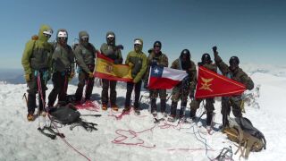 Este equipo militar alcanza la cima del cerro San Lorenzo en Chile, el segundo punto más alto de la Patagonia chilena con 3.706 metros de altitud. Tardaron 17 horas en completar la expedición.