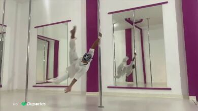 La campeona de España de pole dance se ha vestido de sanitaria para bailar en la barra y dedicar su homenaje a aquellos que luchan día tras día contra el coronavirus.