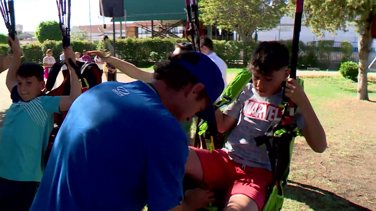 Tres pilotos profesionales de parapente acudieron a un colegio de Sonseca (Toledo) a enseñar su deporte a las nuevas generaciones. El parapente es una modalidad muy bonita y su situación en España no es buena.