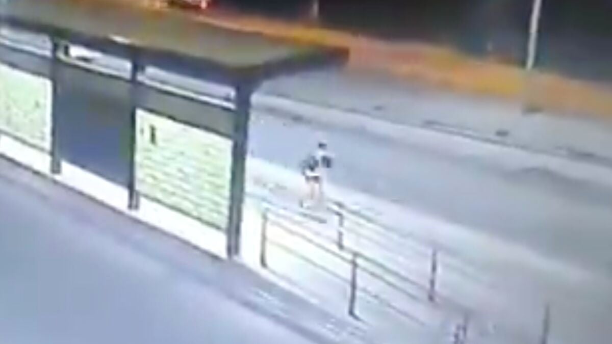 La secuencia fue grabada el pasado viernes por una cámara de seguridad de esta ciudad de la Patagonia argentina. Las imágenes son duras y pueden herir la sensibilidad.