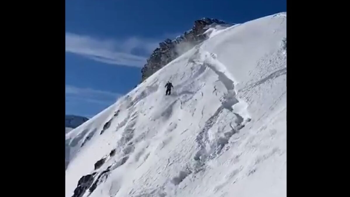 En el vídeo, compartido y viralizado en la redes sociales, se puede ver como el esquiador es arrastrado por la avalancha cuando comienza su bajada, siendo arrastrado varios decenas de metros por el alud.