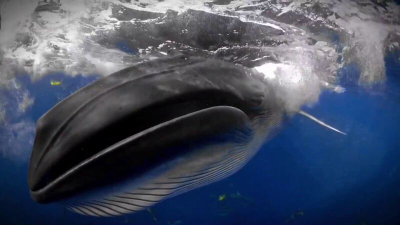 Pues bien, no se había recuperado del susto cuando aparece otra criatura gigante, una ballena jorobada, que también se acercó a darse un festín, justo delante de su objetivo.