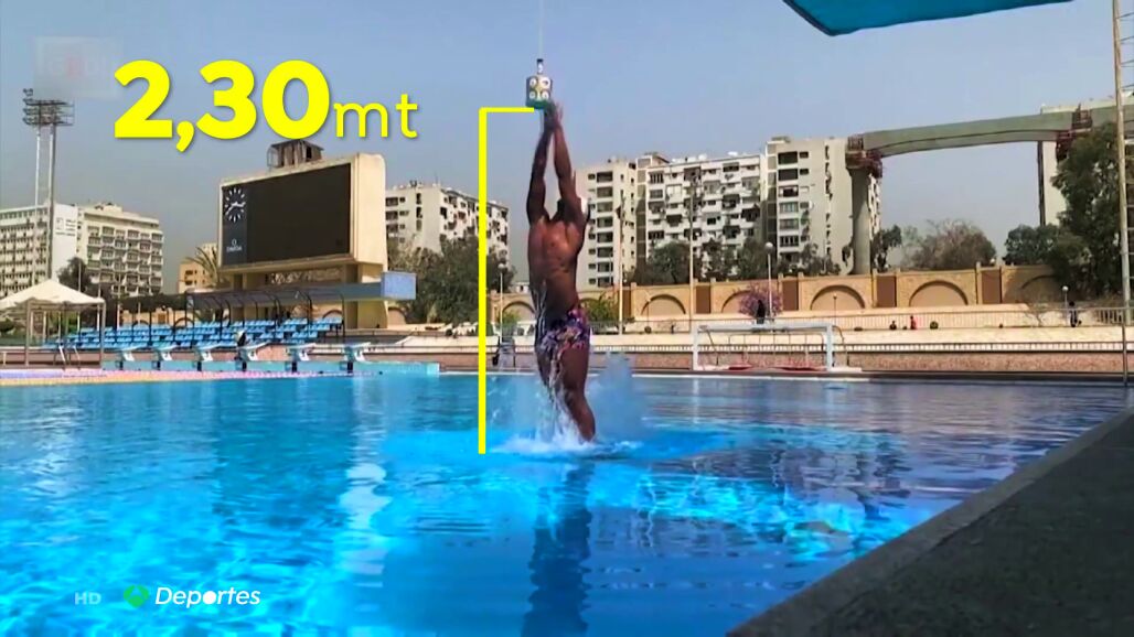 "El récord anterior estaba en 2 metros. Es difícil porque necesitas mucha fuerza explosiva, repetición y velocidad", explica el nadador Omar Shaaban.