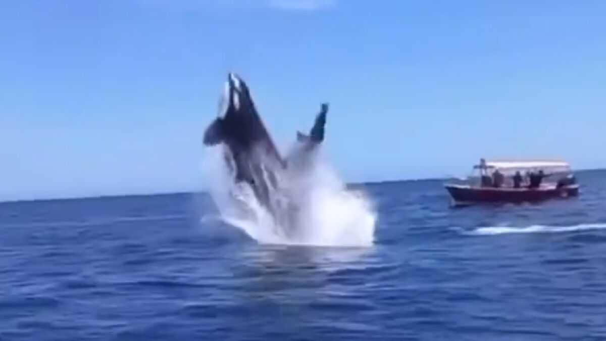 El increíble salto de una orca al intentar cazar a un delfín en el golfo de California