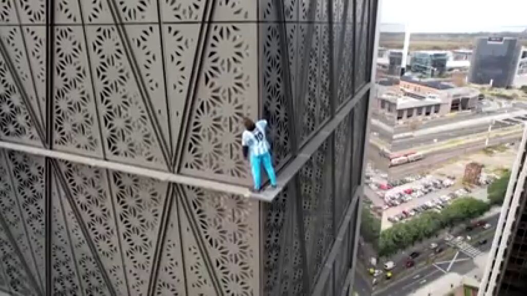 El 'influencer' Marcin Banot escala un rascacielos de Buenos Aires sin arnés y con la camiseta de Messi