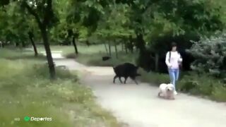 Ahora que la gente comienza a recuperar ciertas zonas verdes en la desescalada del coronavirus, hay que tener cuidado con algunos animales que campan a sus anchas durante estos días. Una mujer paseando con su perro y una runner se llevaron un buen susto con un jabalí.