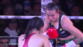 El combate frente a la mexicana, que vivió su momento de apogeo en un intenso intercambio de golpes en el cuarto de los diez asaltos. La pelea arrojó un resultado igualado para los jueces.