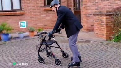 John Wilcock ha aprendido a combinar su andador con los patines, todos los días da vueltas por su barrio durante una hora y media. Todo lo hace por una causa benéfica, recaudar dinero para familias necesitadas.