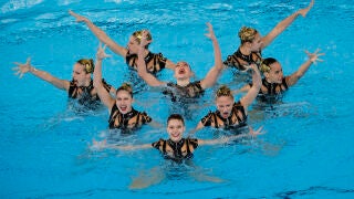 Tras dos jornadas de esta disciplina, el equipo español llegó al concurso en quinto lugar. Con precisión y elegancia al ritmo de ‘O fortuna’ de Carmina Burana y ‘Lose Yourself’ de Eminem, las 'sirenas' de Mayuko Fujiki y Judit Requena Pericas han vuelto a dar una medalla a España 12 años después.