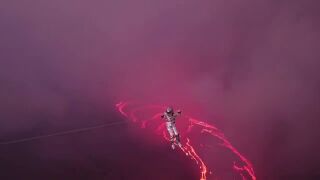 El volcán está a 1200 grados y por encima ha cruzado en tirolina Karina Oli-ani, el paseo ha sido de algo más de 100 metros: "Estar encima de toda esa lava con todo el calor y en medio del volcán ha sido cumplir un sueño que tenía desde que era muy joven", explica Karina.