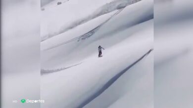 Sólo su gran destreza para manejar la tabla de snowboard le salva de morir atrapado en un alud de toneladas de nieve.