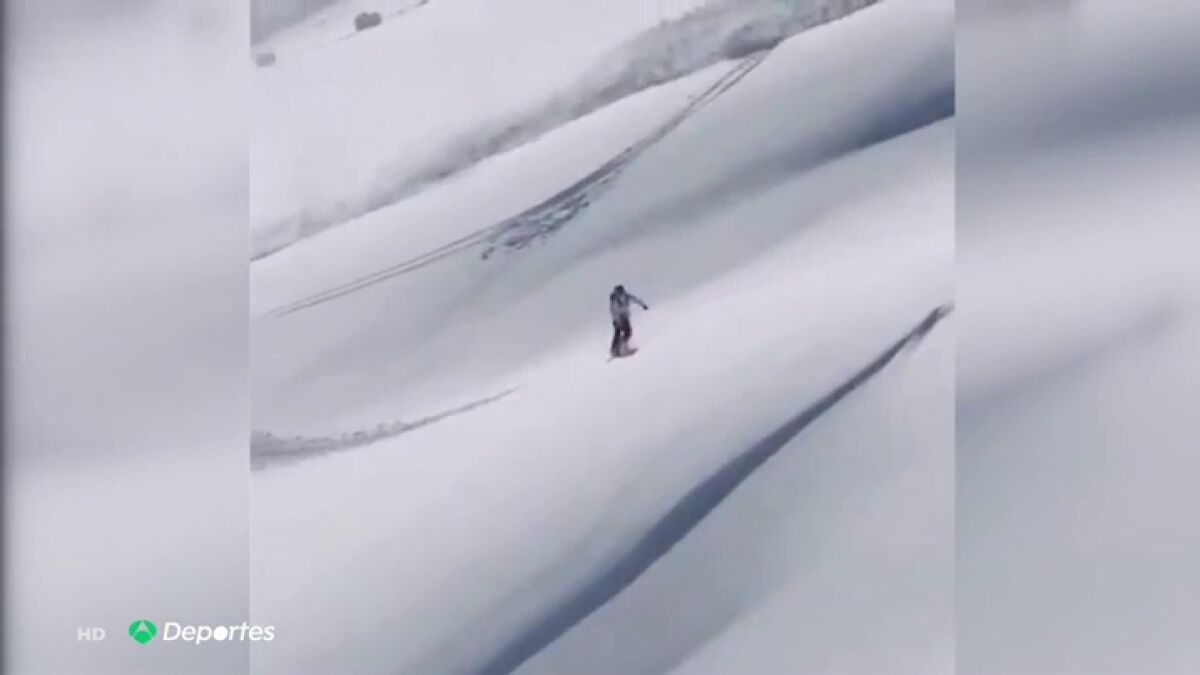 Su destreza manejando la tabla de snowboard le salva de morir atrapado entre las toneladas de nieve de un alud que iba tras él.