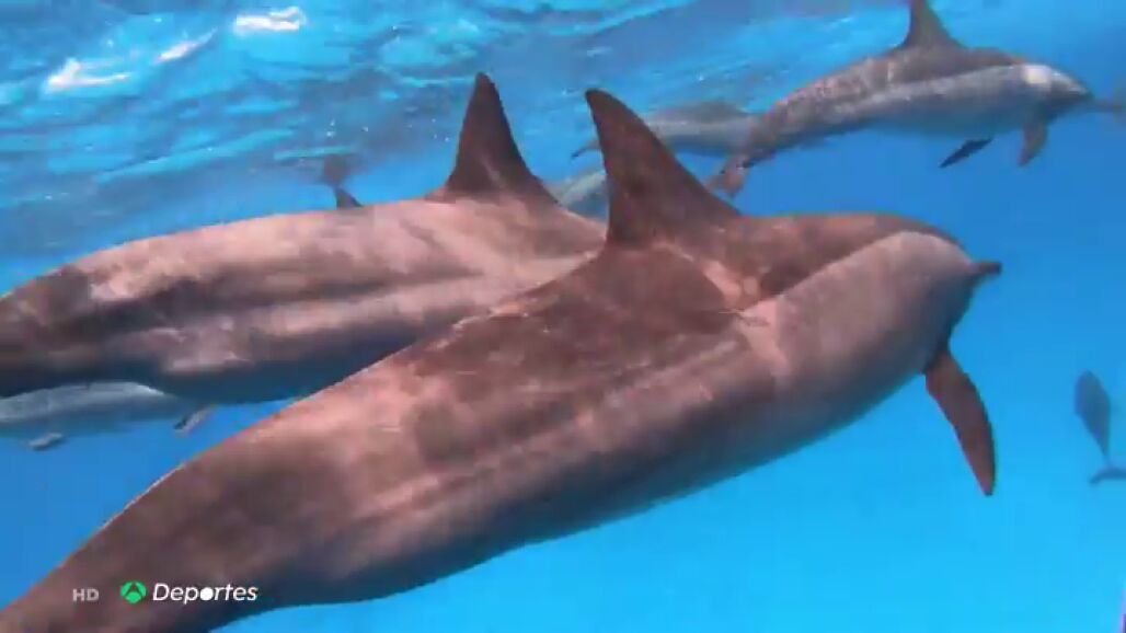 Víctor Albiol recorrió el Mar Mediterráneo durante dos horas acompañado de estos simpáticos delfines, que no se separaban de él: "Cogieron confianza y se acercaron a mí".